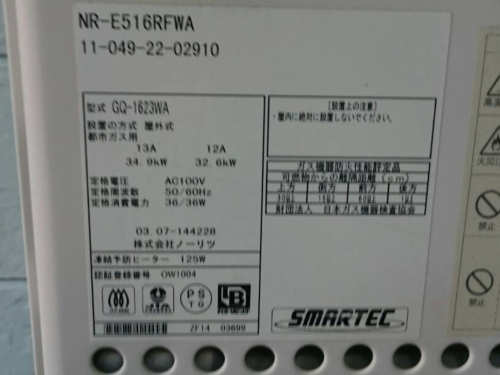 現在設置されているノーリツ製ガス給湯器GQ-1623WAを