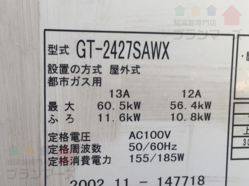 | 名称 | GT-2427SAWX→GT-C2452SAWX-2 BL 給湯器交換工事専門店|プランマーズ【府中市】 |