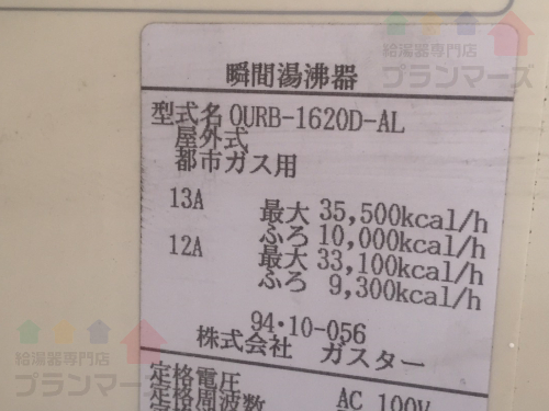 | 既存給湯器: | ガスター:OURB-1620D-AL |